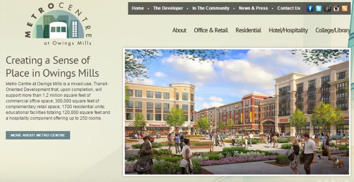 This is part of a project called Metro Centre at Owings Mills, a mixed-use transit-oriented development that, when completed, will include commercial office space, retail space, as well as residential units, educational resources and more. David S. Brown Enterprises is working hard to create a "sense of place" in Owings Mills. (See Ribbon-Cutting Planned For Completion of Road Connecting Metro Centre at Owings Mills to Owings Mills Town Center.)