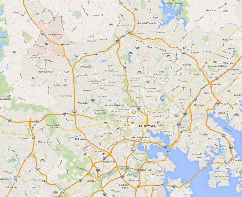Owings Mills is conveniently located in the northwest suburbs of Baltimore county.